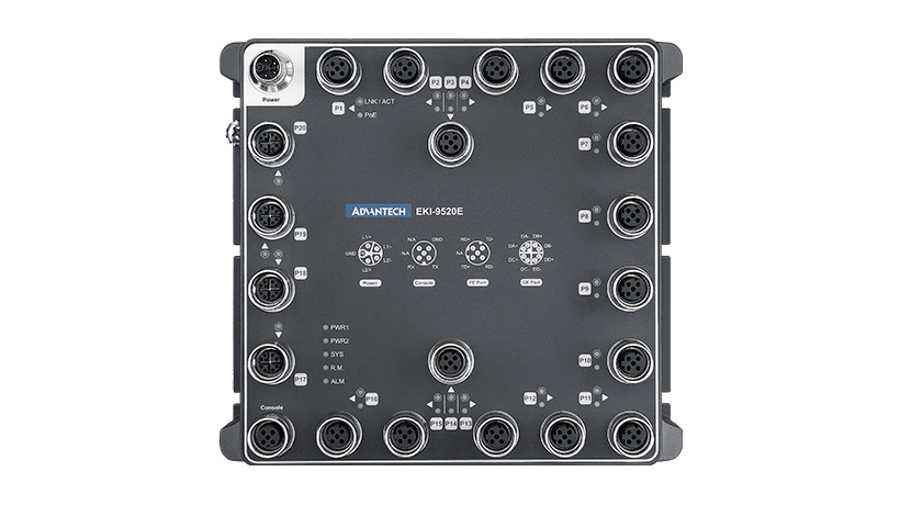 EN 50155 L2 M12 16FE PoE+4GE Managed Switch, 24~110 VDC